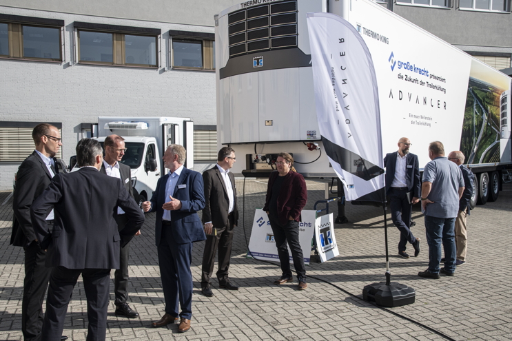 Ein weiteres Feature der Advancer-Serie sorgte bei den Besuchern in Osnabrück für Aufsehen und Gesprächsstoff: die Hybrid-Fähigkeit der Anlage in Bezug auf die Energie-Quelle. Diese kann neben Diesel auch Elektro-Energie sein, etwa in Verbindung mit einem Achsgenerator des Trailers – hierzu hatte Thermo King kürzlich eine Zusammenarbeit mit dem Achsenhersteller BPW vermeldet. „Die Advancer-Serie ist bewusst so konzipiert, dass sie mit neuen Antriebstechnologien wie Elektro- oder Wasserstoff-Antriebe kompatibel ist. Damit bieten wir Zukunftssicherheit", sagt Markus Trawka, Geschäftsführer von Große Kracht, zusammen mit dem geschäftsführenden Gesellschafter Torsten Buddenbohm Gastgeber des Events.