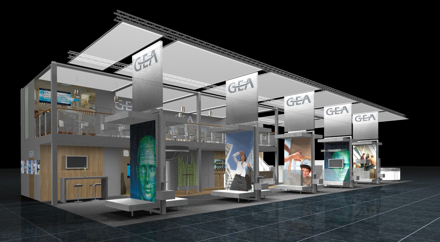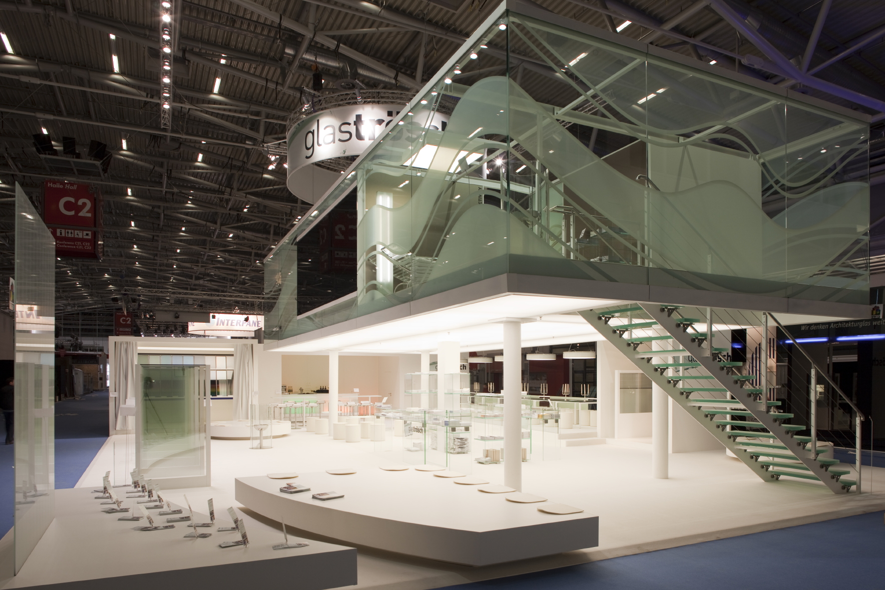 Showrooms, Medienfassade und eine Glastreppe zur "Skybox”: Glas Trösch mit futuristischem Messestand auf der BAU 2009