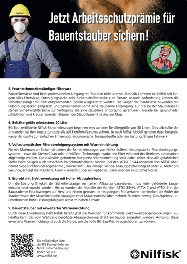 Höhere Zuschüsse der BG Bau für Bauentstauber mit hohen Absaugvolumina