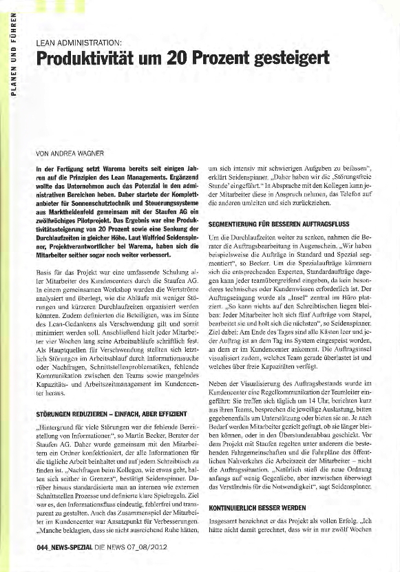 Produktivität um 20 Prozent gesteigert